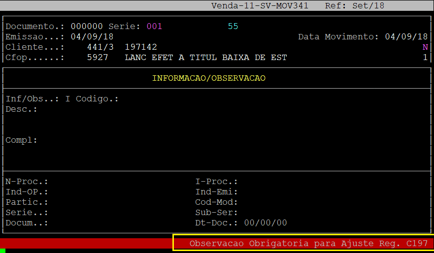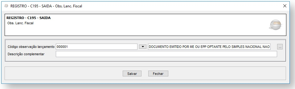 Se no momento do lançamento do Ajuste, não tenha sido informado um código de Observação, será obrigatório o preenchimento na tela de Informação/Observação.