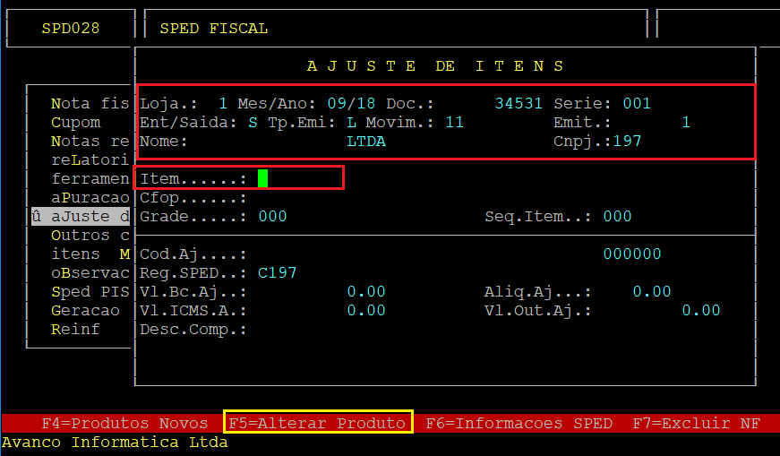 Localização: | SPED - EFD / Ajuste de Itens / Ajuste de Itens |