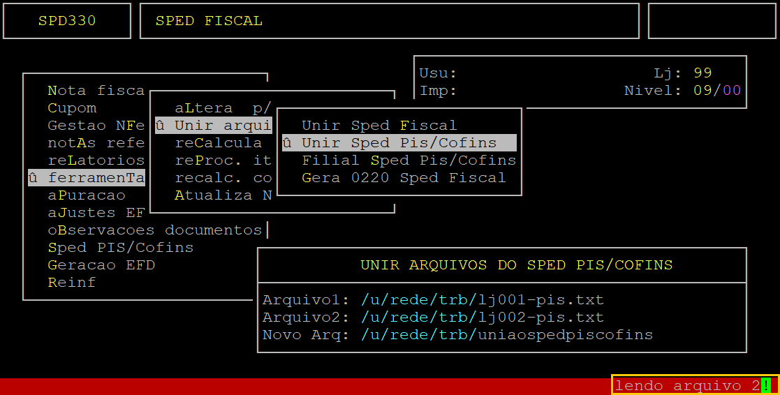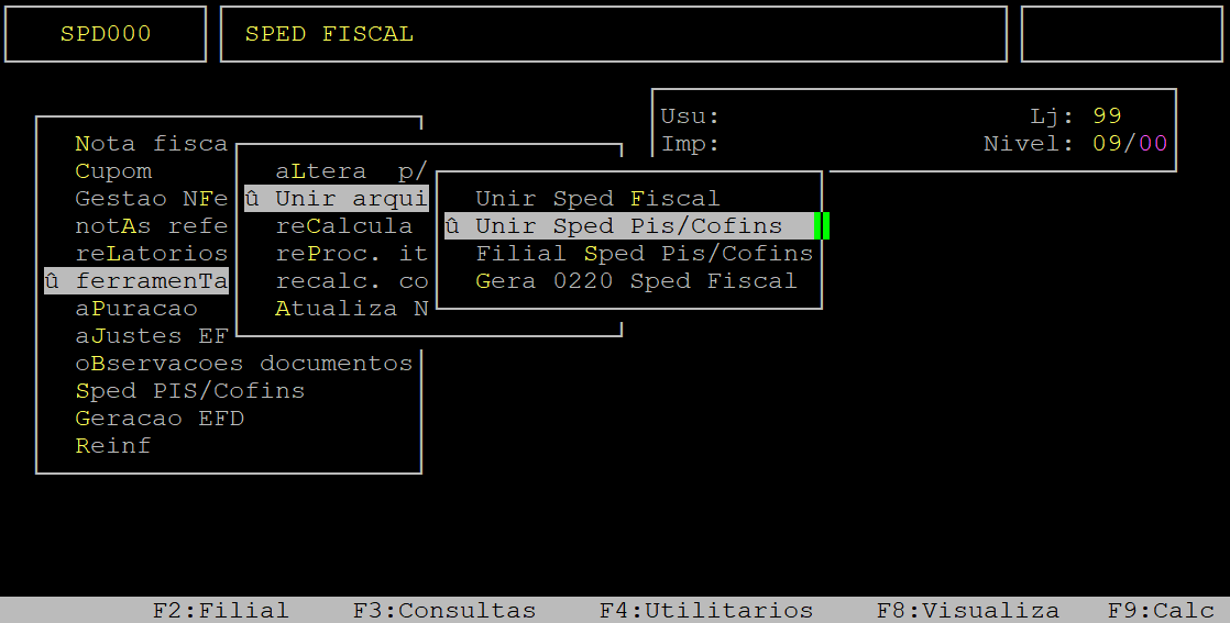 Rotina: | UNIR ARQUIVOS DO SPED PIS/COFINS |