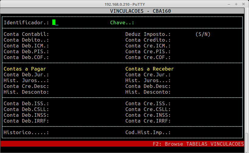 | Identificador: | Informe o código do Identificador, use F2 para visualizar todos os já cadastrados. |