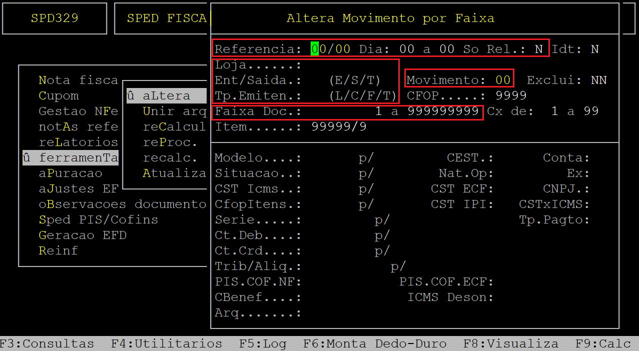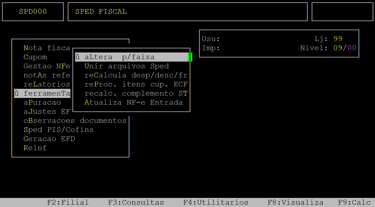 Localização: | SPED EFD - NFe NFCe / Ferramentas / Altera p faixa |