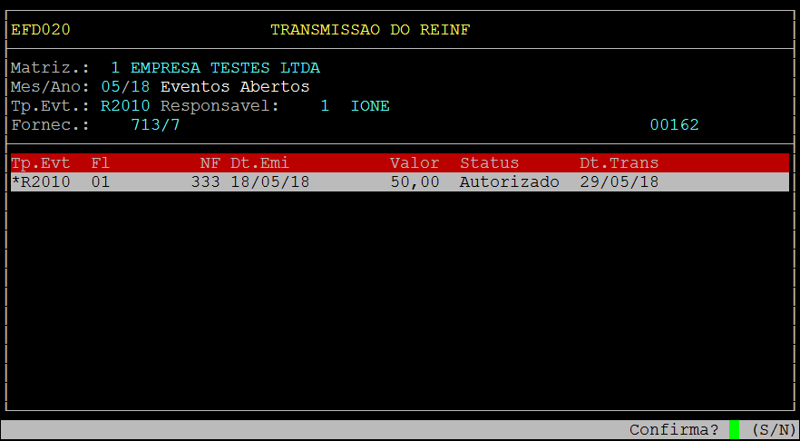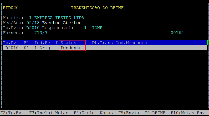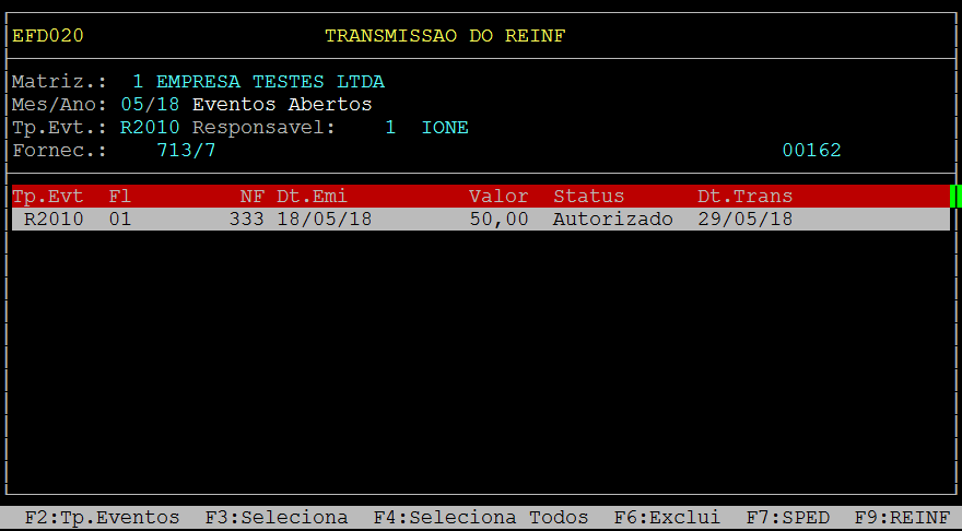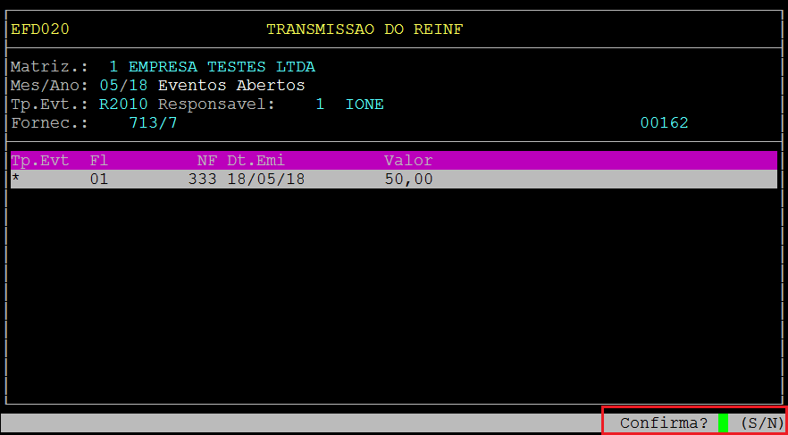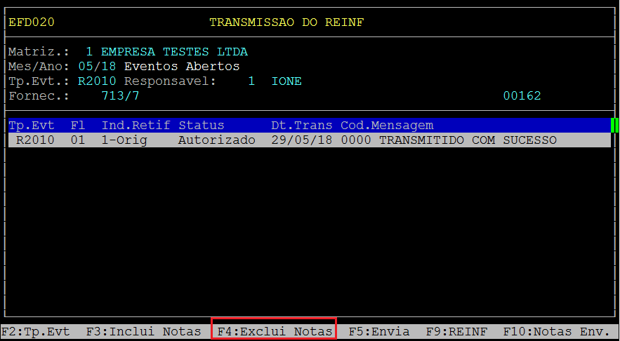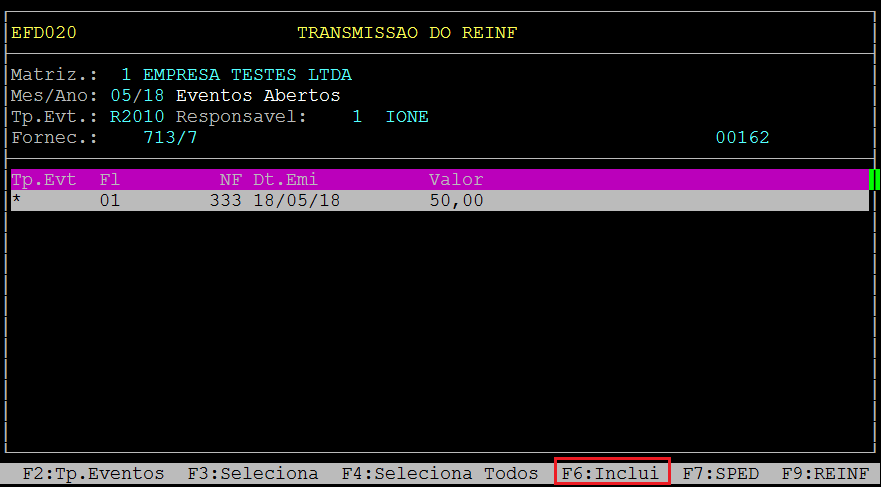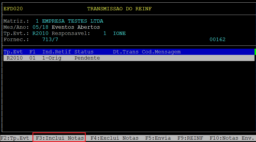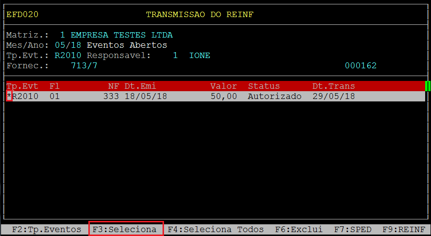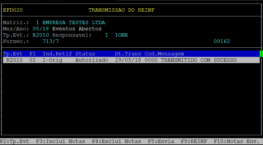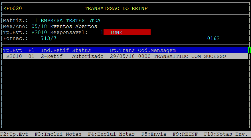 | Rotina: | REINF |