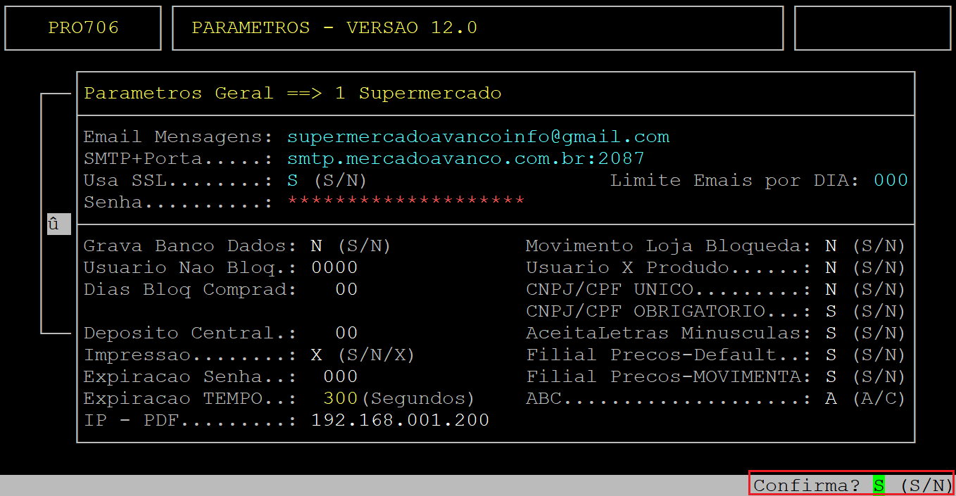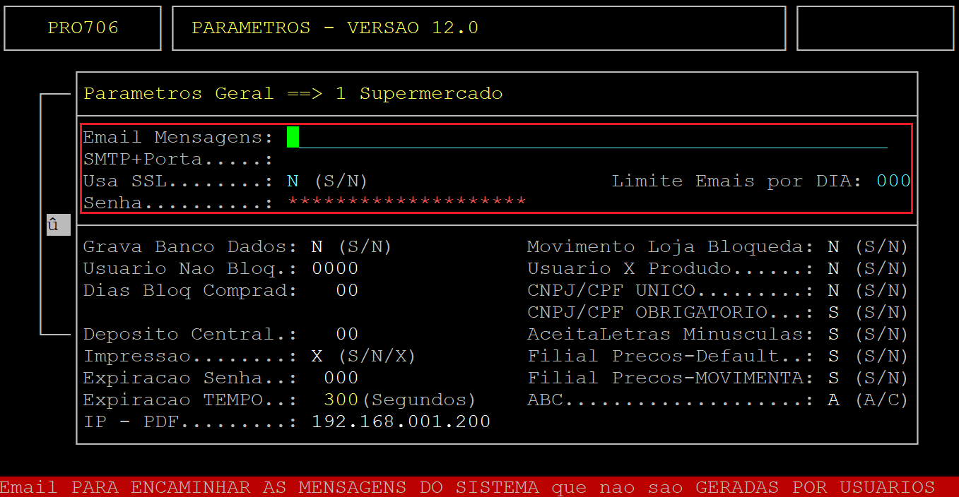 Informe as configurações do servidor do "Email Mensagens", sendo: Servidor de saída do e-mail, o símbolo de dois pontos ( : ), a Porta do Servidor e, pressione a tecla Enter para prosseguir.