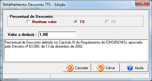 Ao término, deve-se informar o valor a deduzir e depois clicar em Salvar.