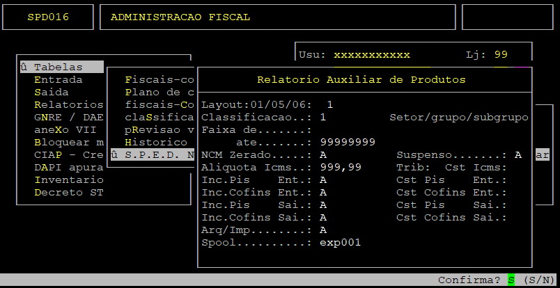 | Localização: | Administracao Fiscal / Tabelas / Sped-NFe / Mercadoria / produtos / Por Faixa |