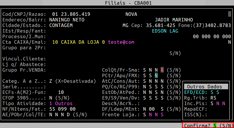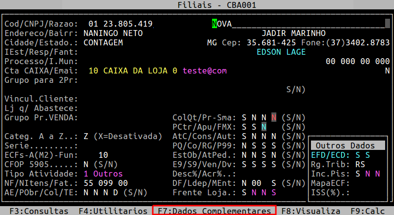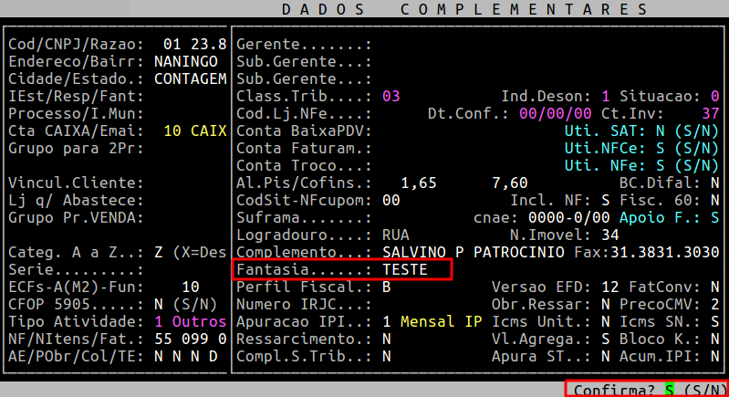 Pressione a tecla Enter ou S para confirmar o acesso a rotina de Dados Complementares.