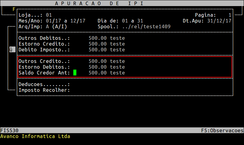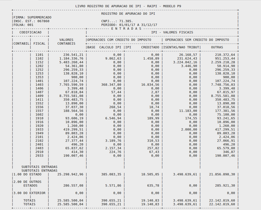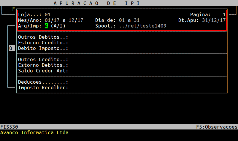 Localização: | Administração Fiscal / Relatórios Gerenciais / Apuração / Livro de Apuração IPI |