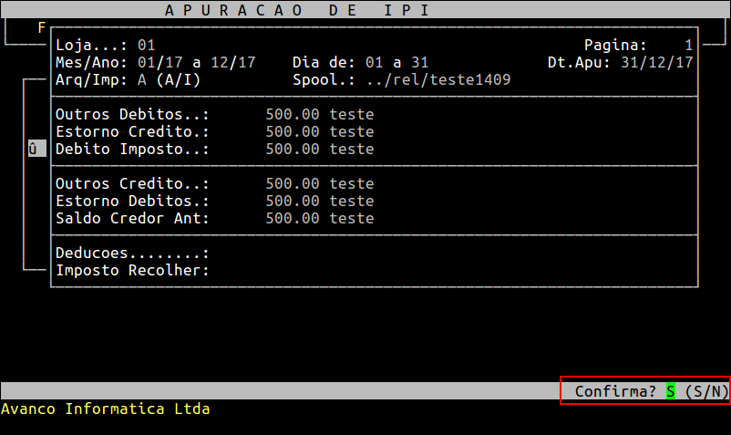 Após informar todos os valores solicitados pressione Enter para confirmar.