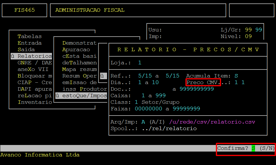 Acesse a localização citada acima para emitir o relatório de CMV.
