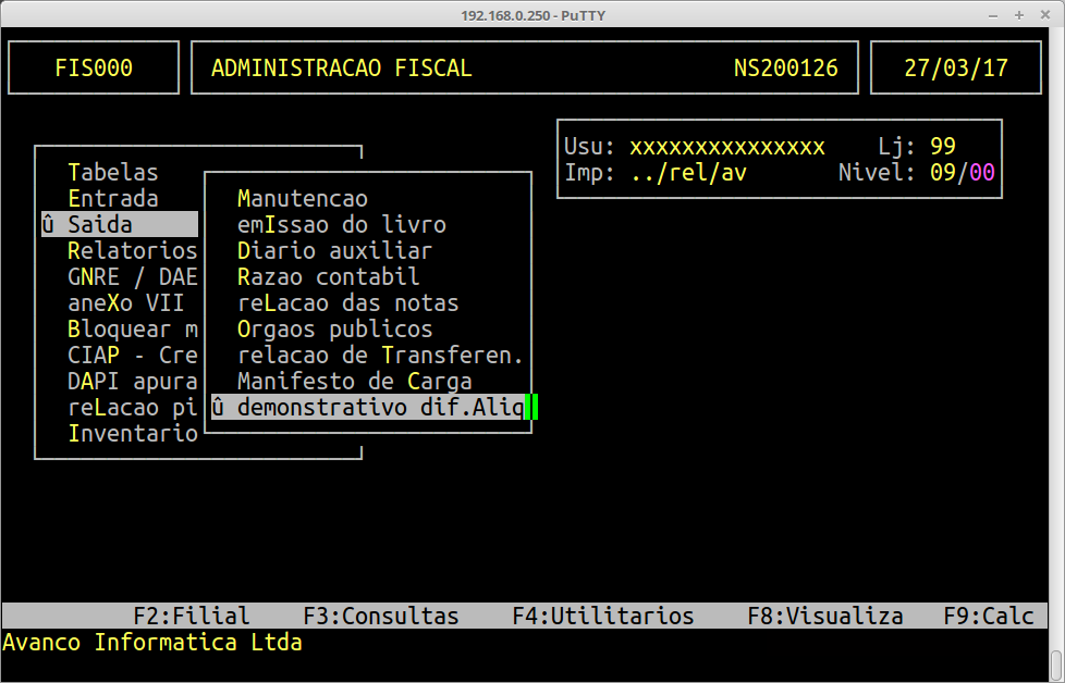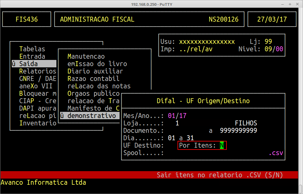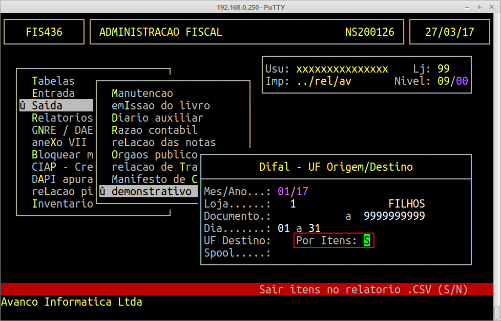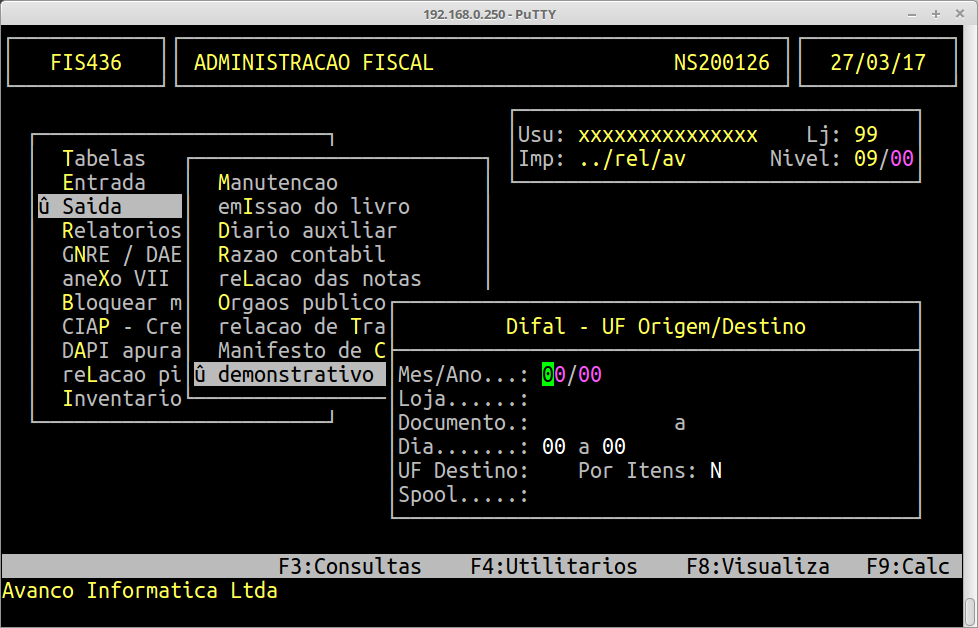 | Localização: | Administração Fiscal / Saída / Demonstrativo Dif.Aliq |
