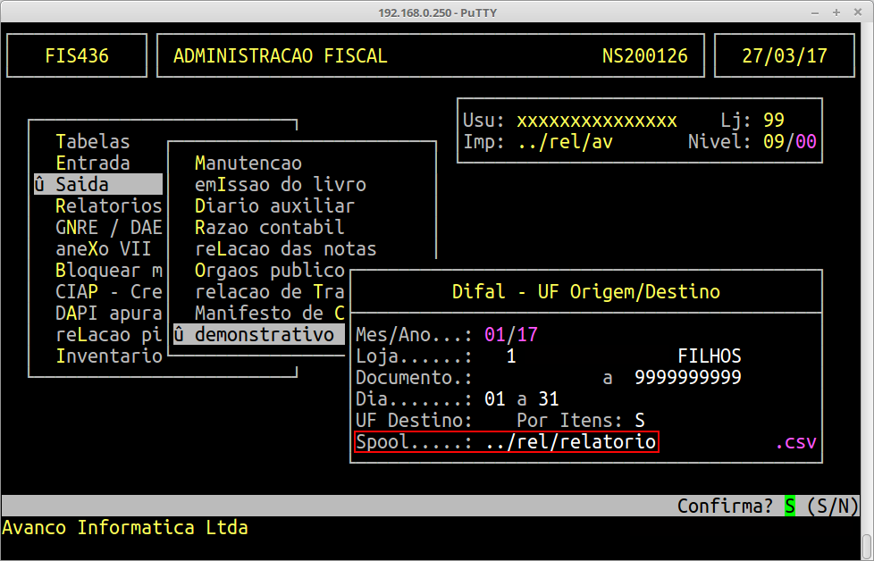 No campo Spool, informe o nome para o arquivo.