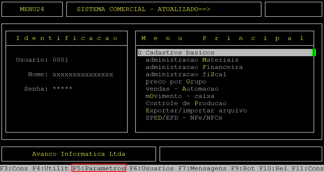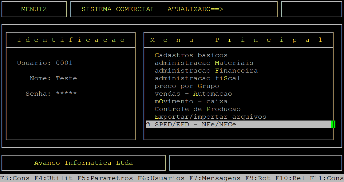 Localização: | Menu Principal / tecla F5 / Fiscal / Geral |