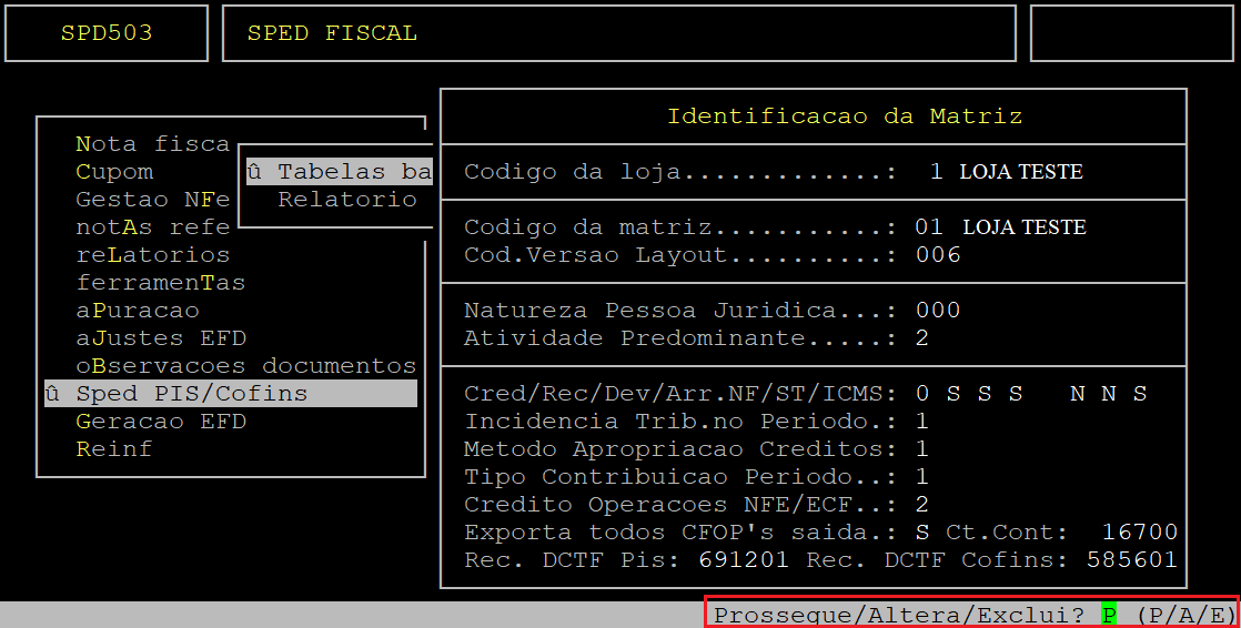 A seguir, o sistema exibirá a pergunta " Prossegue/Altera/Exclui? ", no qual deverá informar a letra A para habilitar a opção de alteração.