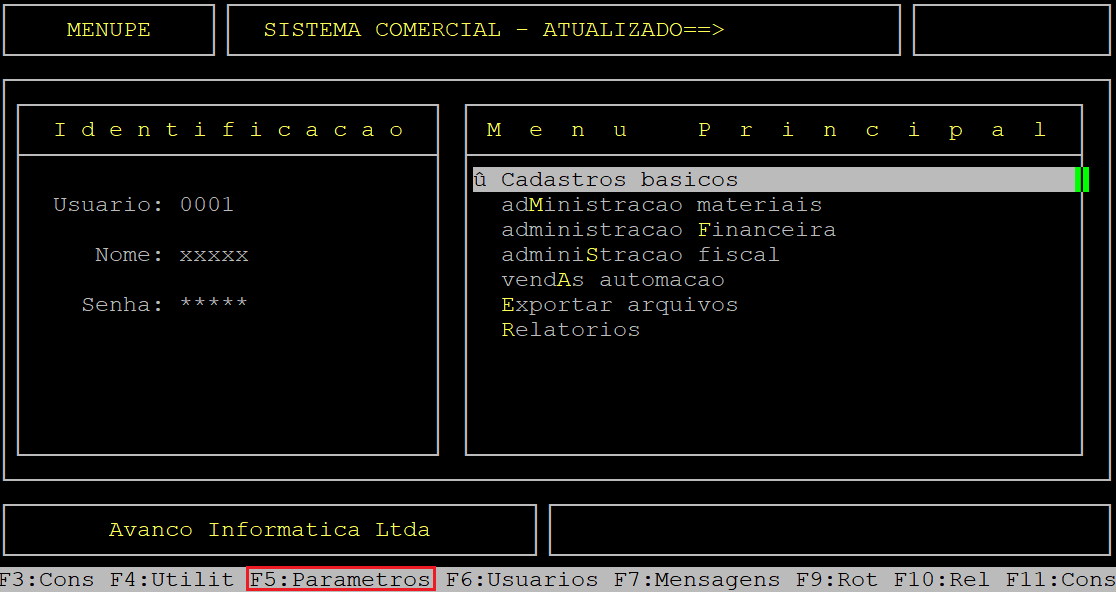 Na tela de Parametros NFE pressione a tecla Esc até sair da rotina.