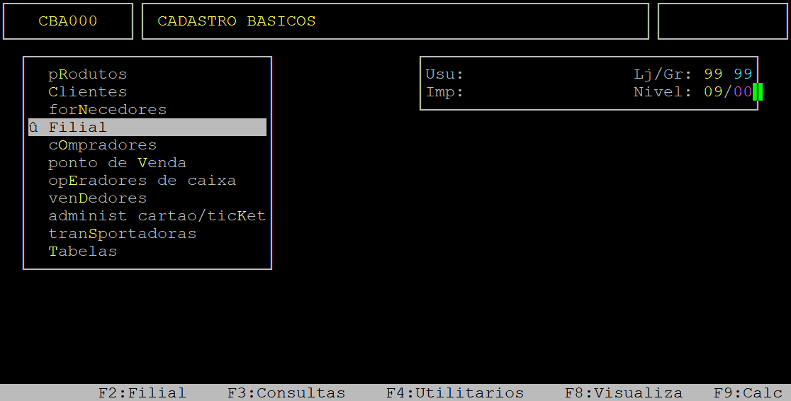 Localização: Cadastros Basicos / Filial