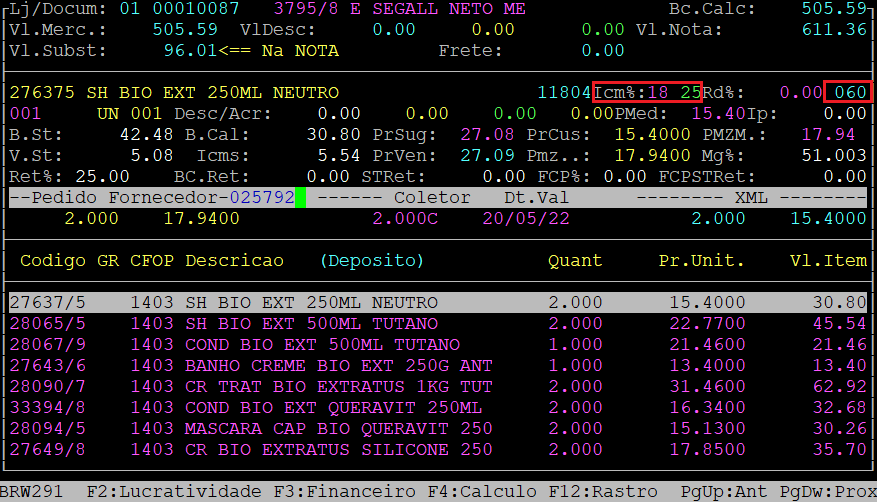 Abaixo segue um exemplo de lançamento de nota fiscal de entrada com o CST060 com alíquota.