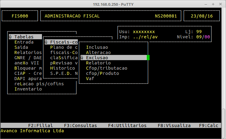 | Localização: | Administração Fiscal / Tabelas / Fiscais - Códigos / Exclusão |