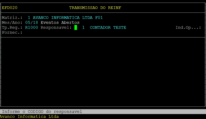 Após digitar a opção de exclusão, será exibido o Evento R1000 - Enviado e o Status do Envio.