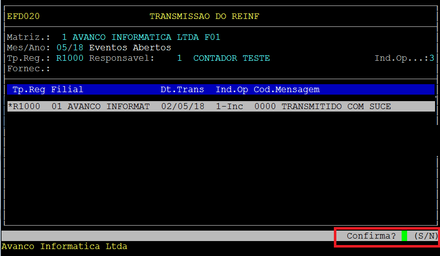 Confirme pressionando "S" - (Sim) para transmitir o Evento de Exclusão.