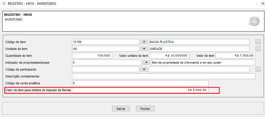 Diante disso, foi criado o campo VL_ITEM_IR no registro H010 para informar o valor do item para efeitos do Imposto de Renda e assim atender a legislação informada acima.