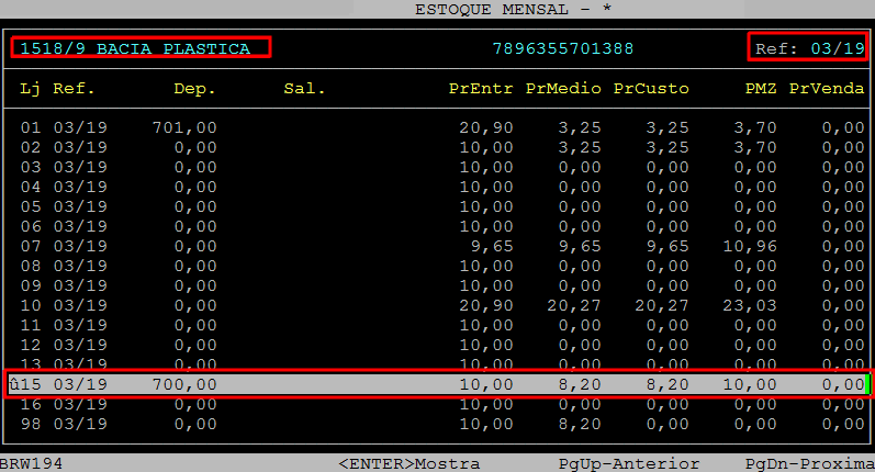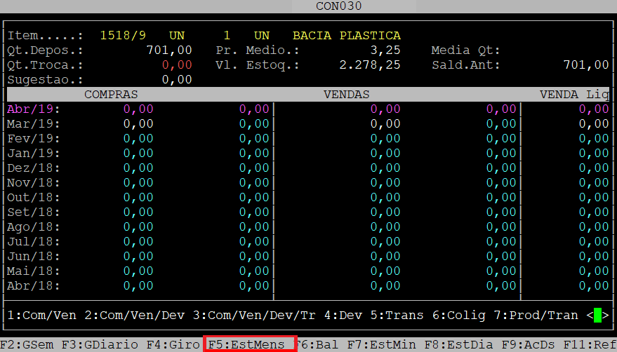 Em seguida, pressione a tecla F5 para acessar a tela do Estoque Mensal.