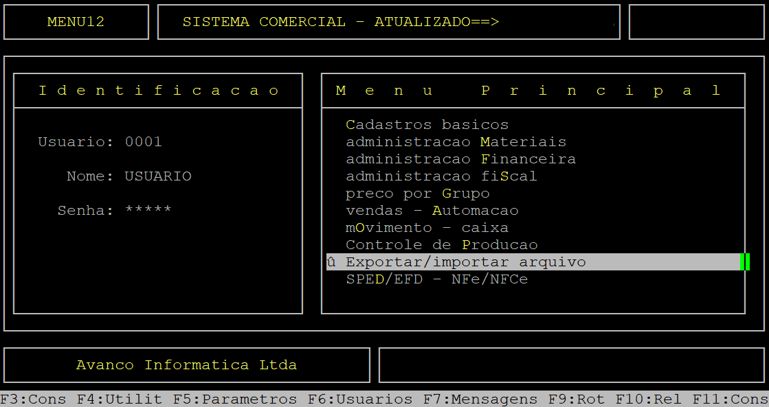 Para gerar o relatório de Integração Contábil, acesse a localização citada acima. Utilize as setas do teclado para selecionar os caminhos e, aperte a tecla Enter para confirmá-los.