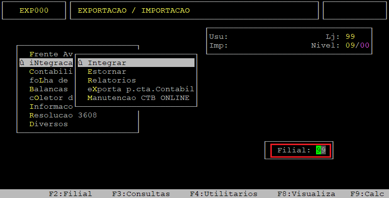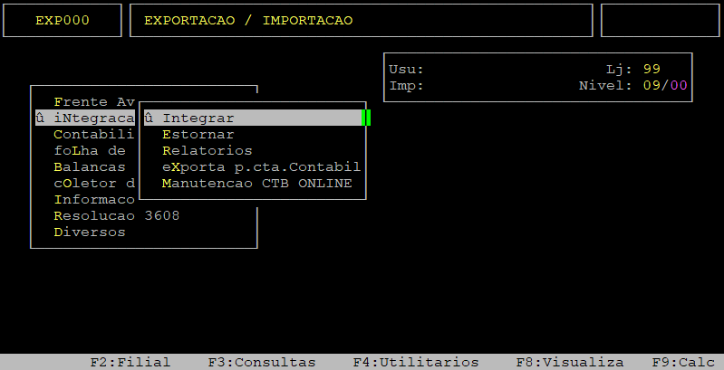 | Localização: | Exportar - Importar arquivo / Integração Contábil / Integrar |