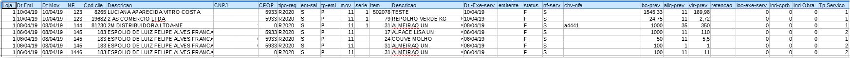 Abaixo segue um exemplo do relatório Analítico, no qual exibe os itens da Nota Fiscal.
