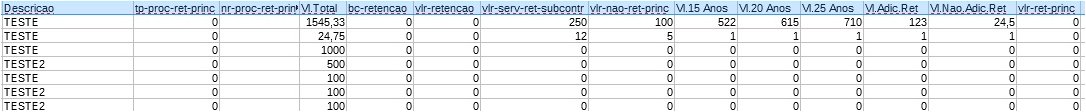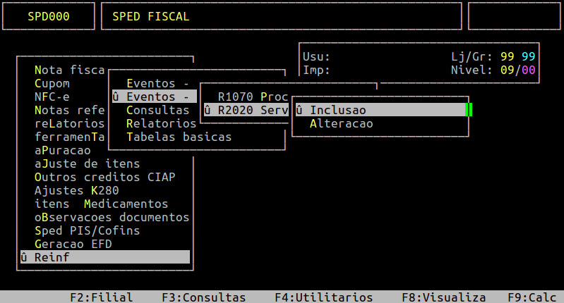 | Localização: | Sped - Efd / Reinf / Eventos - Inclusao / R2020 Serv. Prestados / Inclusao |