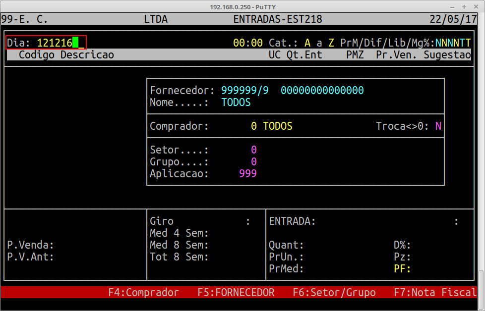 No exemplo abaixo, vamos fazer uma busca geral utilizando somente o campo Dia, nesse campo, informe uma data para análise.