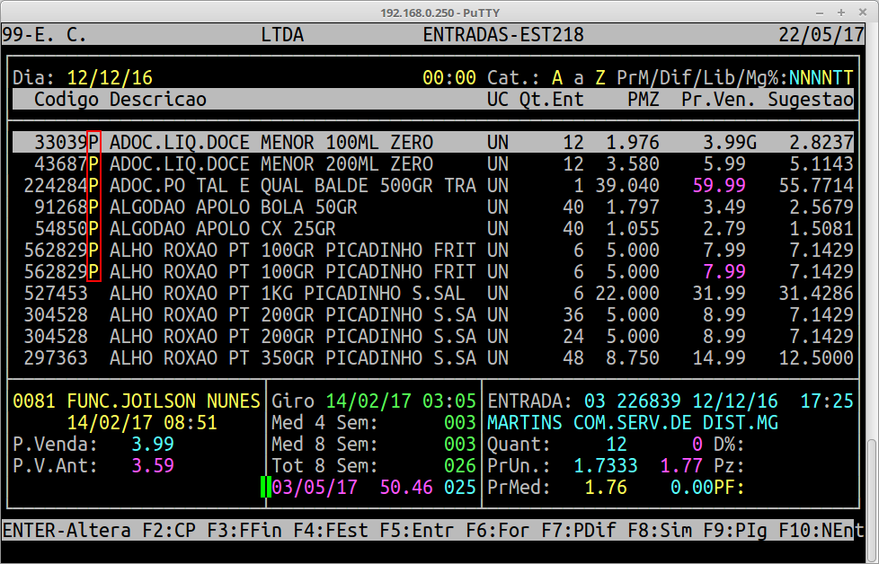 Acesse a localização citada acima para abrir a rotina de alteração de preço.