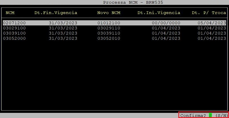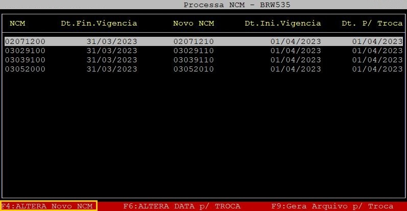 Se desejar alterar o novo NCM, na tela Processa NCM aperte a tecla F4 do teclado.