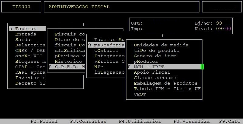 | Localização: | Administração Fiscal / Tabelas / S.P.E.D NFE - ECD / Mercadoria / NCM - IBPT |