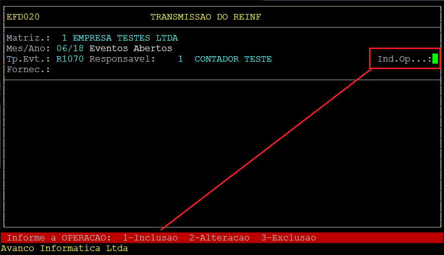 No campo Tp.Evt, digite R1070 e no campo Ind.Op, selecione a opção 1 - Inclusão.