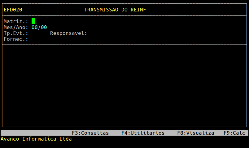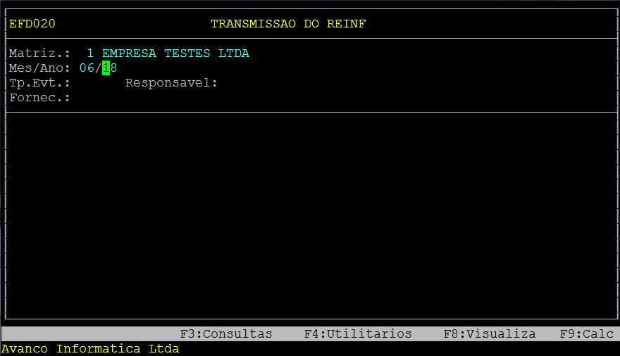 Informe a loja matriz e o período das informações a serem transmitidas ao REINF.