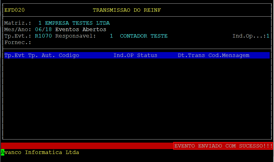 O arquivo gerado será salvo no diretório u/rede/sped/reinf/01/(loja), onde será transmitido automaticamente para a Receita.