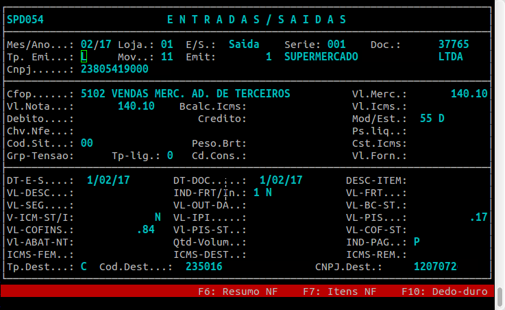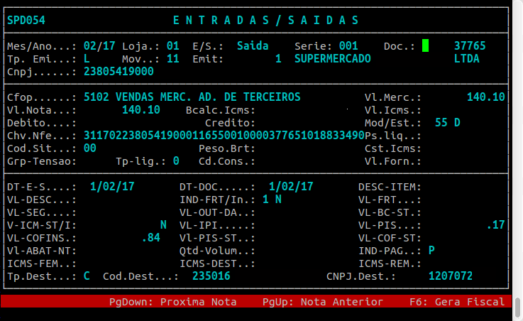 Basta acessar a rotina e informar o Mês/Ano, Loja, se é nota de Entrada ou Saída, Documento e pressionar a tecla Page Down (se não souber a Série, não precisa preenche-la pois, ao digitar os outros dados a nota será carregada).