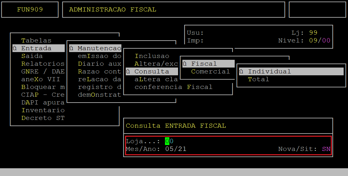 Administracao Fiscal / Entrada / Manutencao / Consulta / Fiscal |