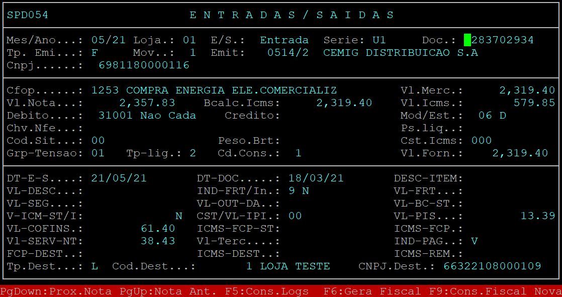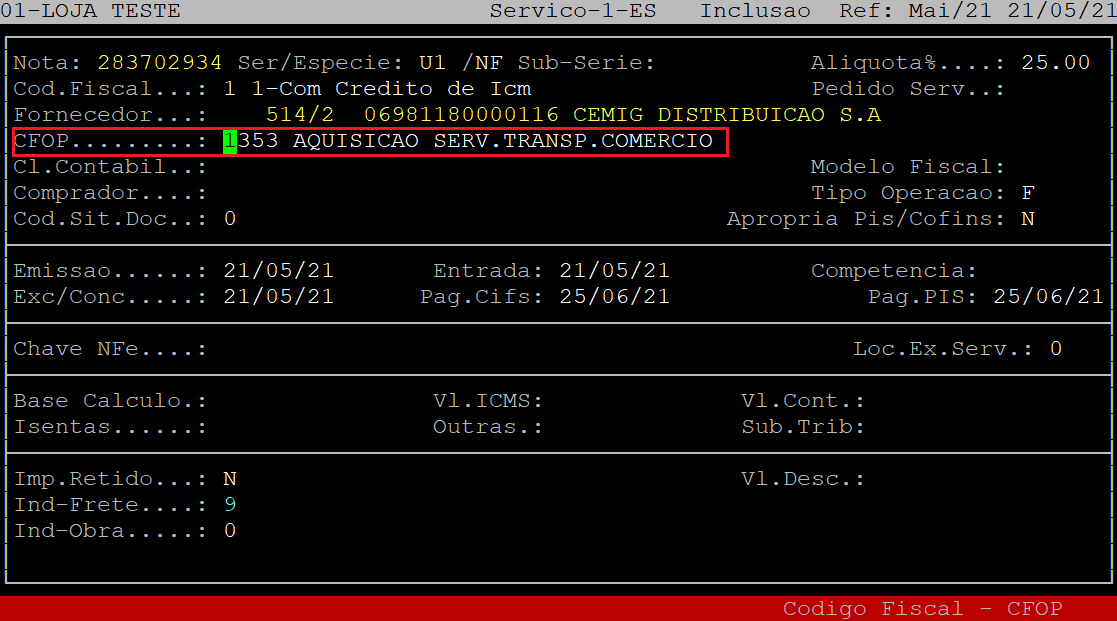 Observe no exemplo abaixo que todos os valores foram gravados nos seus respectivos campos na rotina do Fiscal.