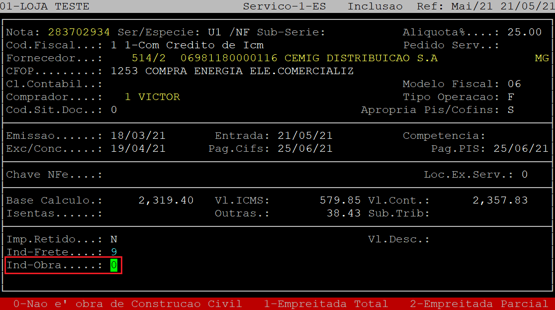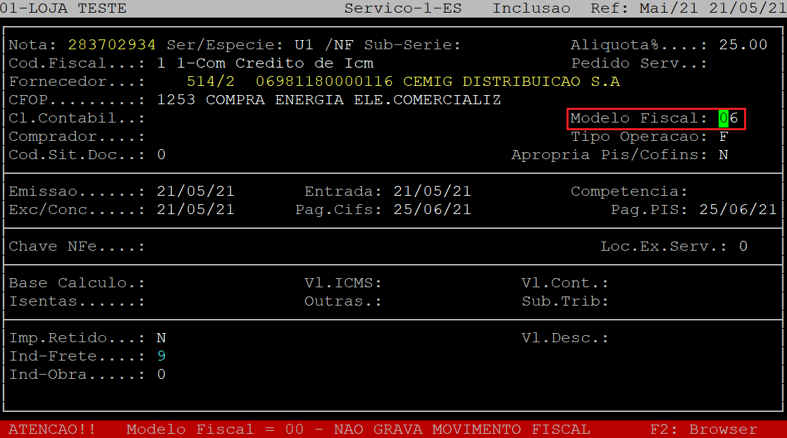 Dúvida | Como Lançar Nota Fiscal Serviço Energia Elétrica Integral?
