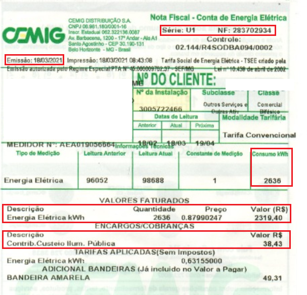 1 - Exemplificando uma Nota Fiscal de Energia Elétrica