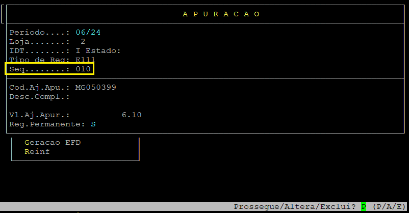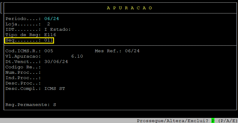 Acesse a localização acima para consultar os sequenciais dos registros criados na apuração.