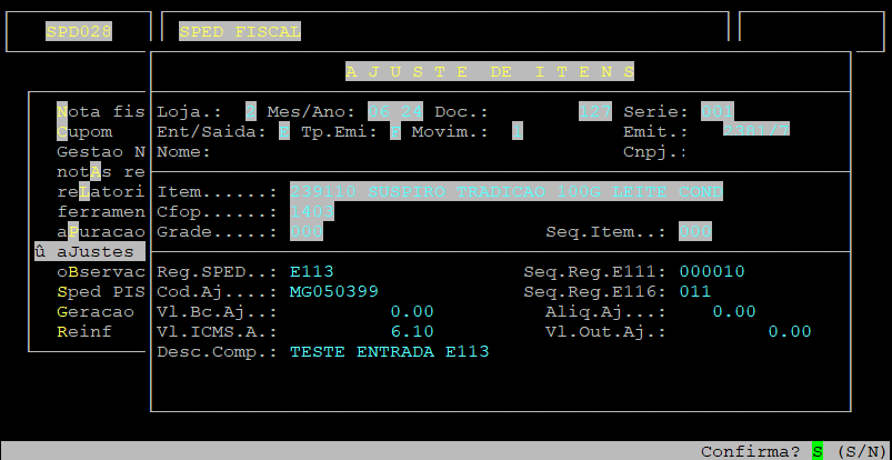 | Localização: | Sped-EFD / Ajustes EFD / ajuste de itens |