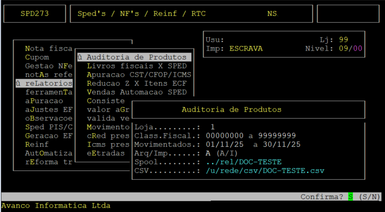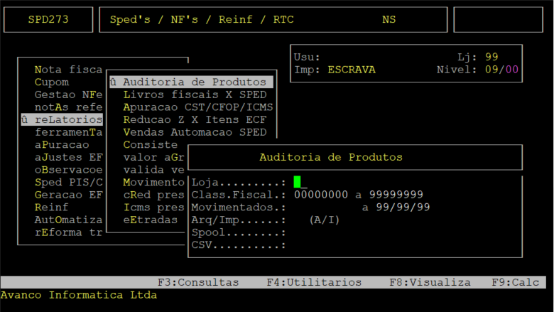 | Localização: | SPED/EFD → NF-e/NFC-e → RTC → Relatórios → Auditoria de Produtos |