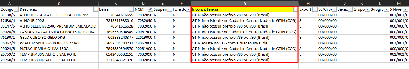 Como realizar a conferência dos códigos EAN/GTIN considerados inválidos pelo sistema Integral e pelo Cadastro Centralizado de GTIN (CCG), garantindo que todas as inconsistências sejam, revisadas e corrigidas no cadastro de produtos.
