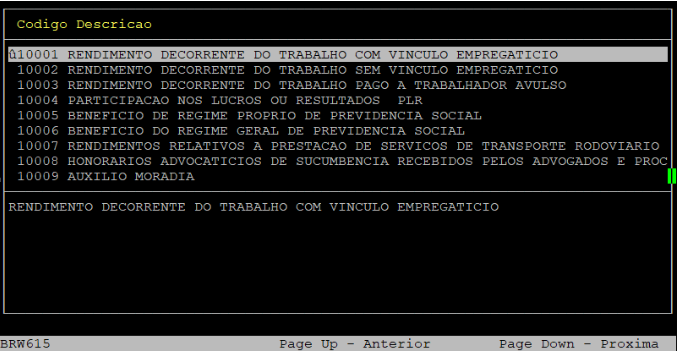 | Localização: | SPED - EFD / Reinf / Tabelas Básicas / Natureza Rendimento |