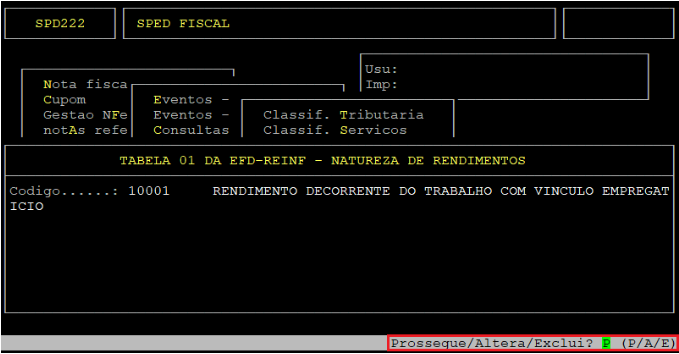 | Rotina: | Tabela 01 da EFD-REINF - Natureza Rendimento |