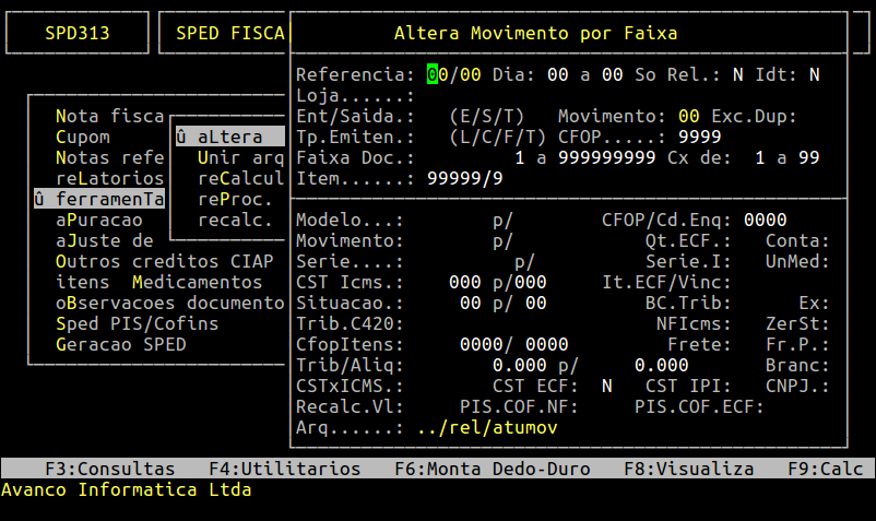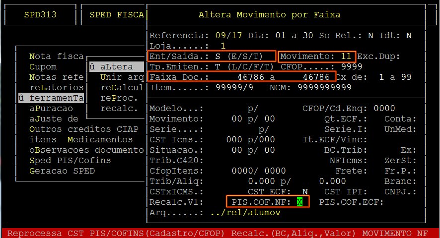 | Localização: | SPED - EFD / Ferramentas / Altera por Faixa |
