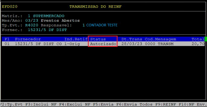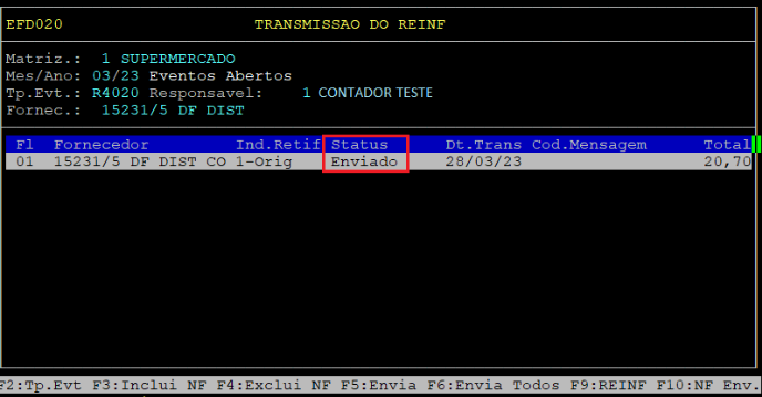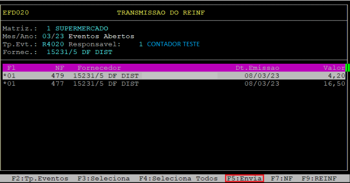 Em seguida pressione a Função "F5:Envia", conforme a imagem a seguir.
