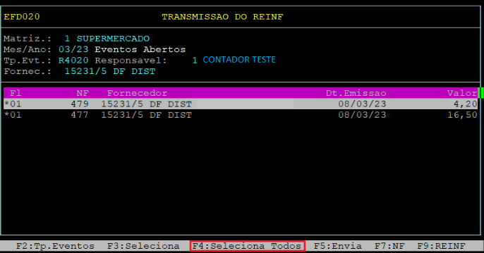 Em seguida digite F4:Selecionar Todos para selecionar a(s) nota(s) que será(ão) enviada(s).